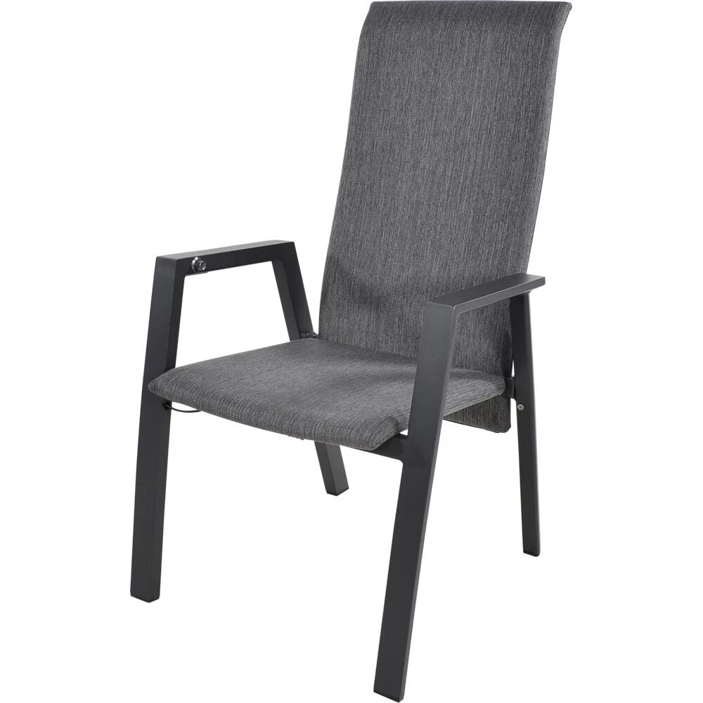 Het lichtgewicht aluminium frame maakt de stoel bovendien gemakkelijk te verplaatsen, zodat je altijd de perfecte plek kunt vinden – in de zon of juist in de schaduw. De textileen bekleding droogt snel na een regenbui en is bestand tegen UV-straling, waardoor verkleuring minimaal blijft.
