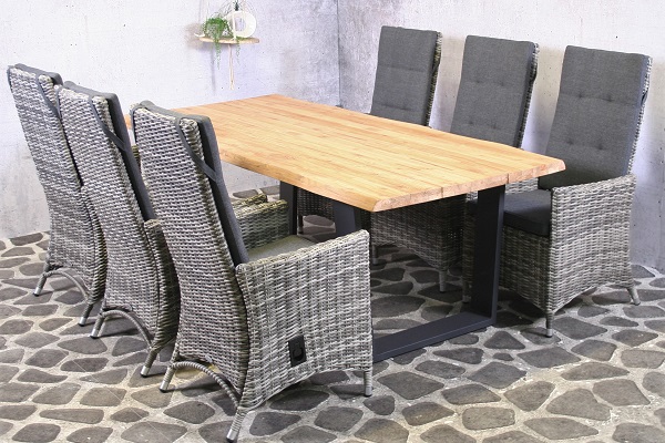 SenS-Line Ferro tuinset 6 wicker stoelen met teakhouten tafel