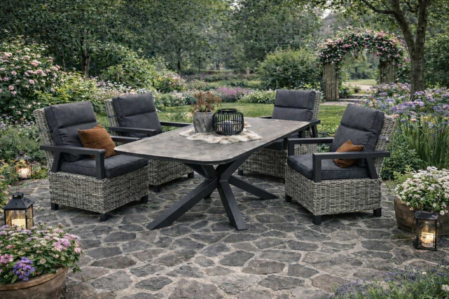 SenS-Line Serono tuinset tafel en 4 verstelbare stoelen – Showmodel Numansdorp – Met de Tuinset Serono creëert u een stijlvolle en comfortabele buitenruimte voor diners en ontspanning. Deze luxe 7-delige set bestaat uit een royale eettafel en zes verstelbare stoelen, perfect voor ultiem zitcomfort.De eettafel De verstelbare stoelen Afmetingen: Tafel: Stoelen (4x): Met de Tuinset Serono geniet u van een combinatie van elegantie en functionaliteit, ideaal voor ontspannen momenten in uw tuin of op uw terras!<>