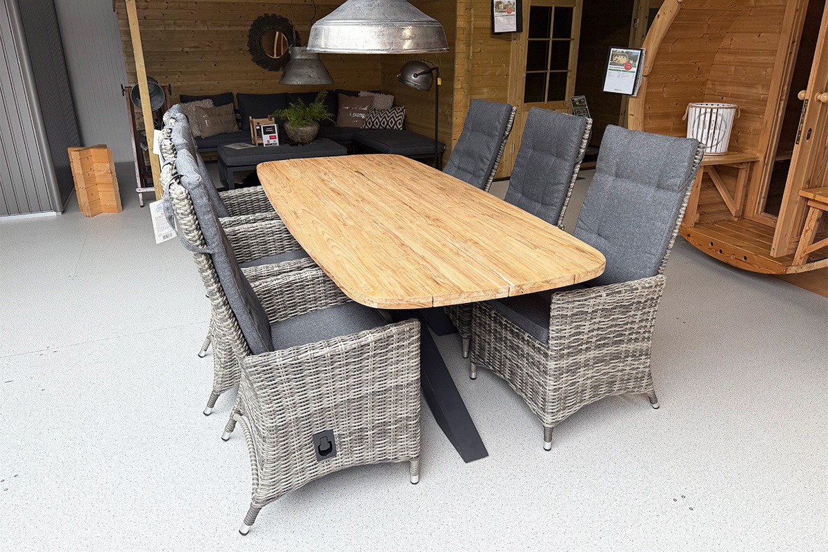SenS-Line Tenerife tuinset 6 wicker stoelen met teakhouten tafel – Showmodel Numansdorp